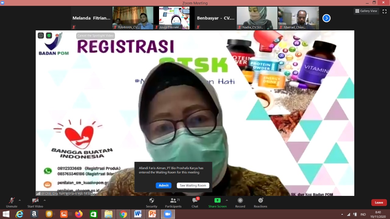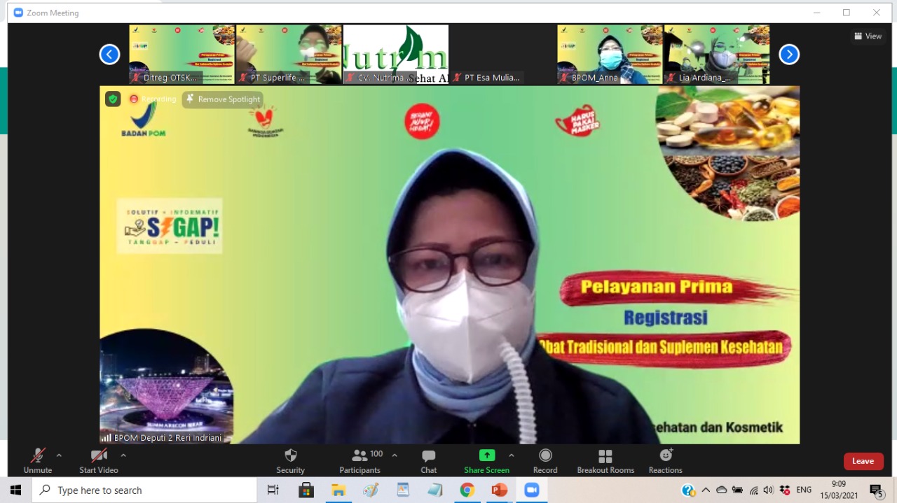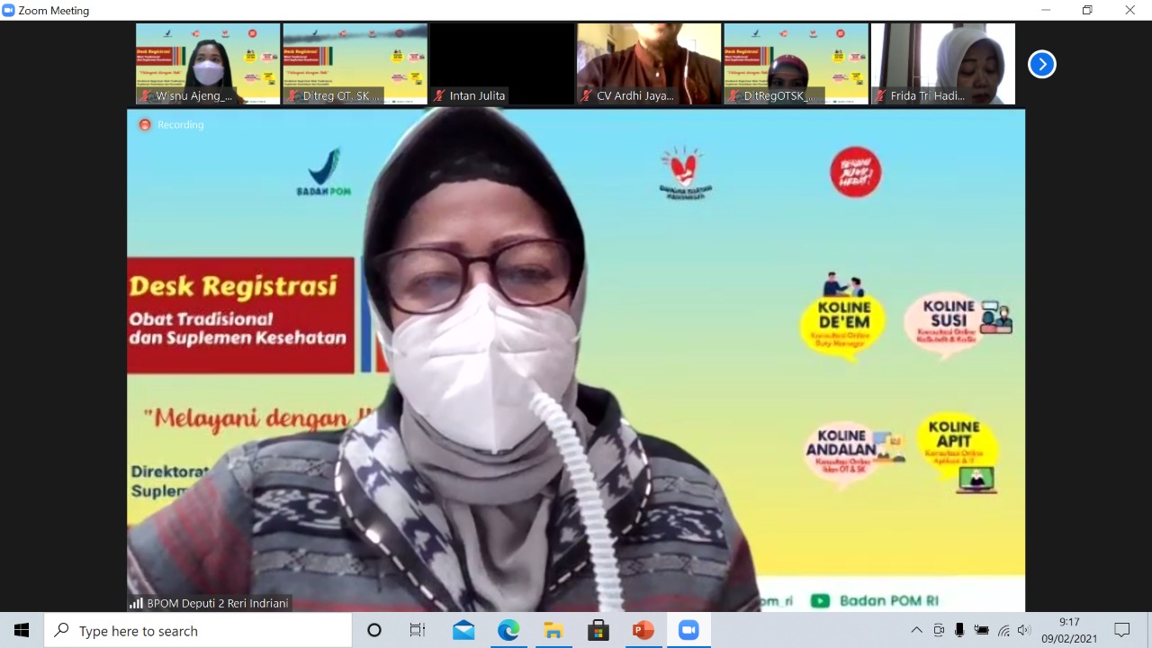 Desk Registrasi Produk dan Iklan Obat Tradisional dan Suplemen Kesehatan dalam rangka percepatan Izin Edar tanggal 9 Februari 2021