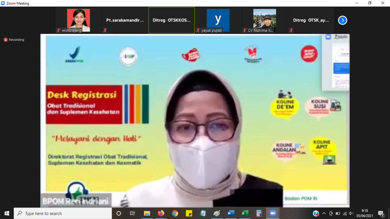 Desk Registrasi Produk dan Iklan Obat Tradisional dan Suplemen Kesehatan dalam rangka percepatan Izin Edar tanggal 9 Februari 2021- Part 2